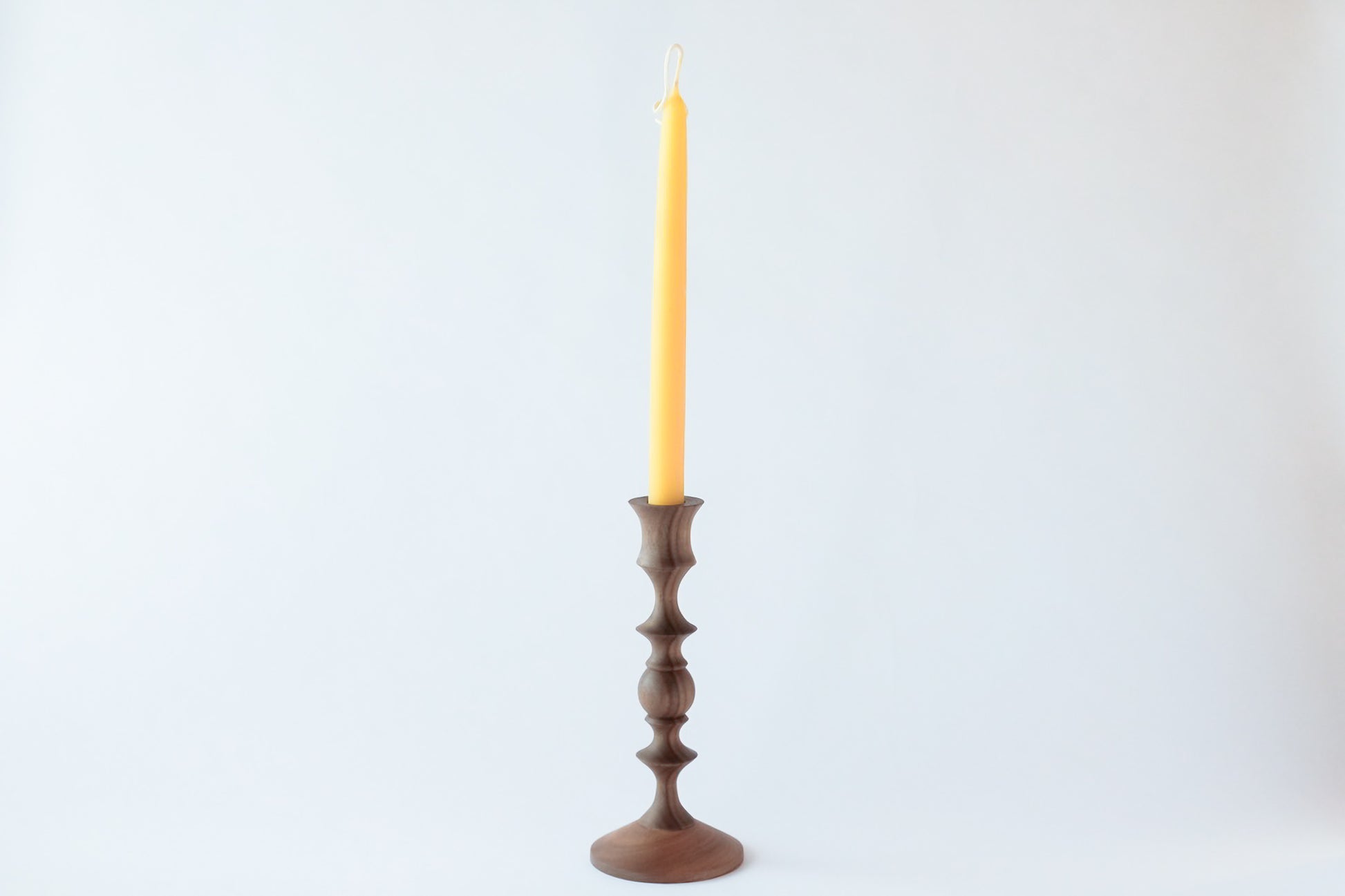ウォールナットの無垢材を丁寧に削り出し、柔らかな曲線を生かして仕上げたキャンドルホルダーです。