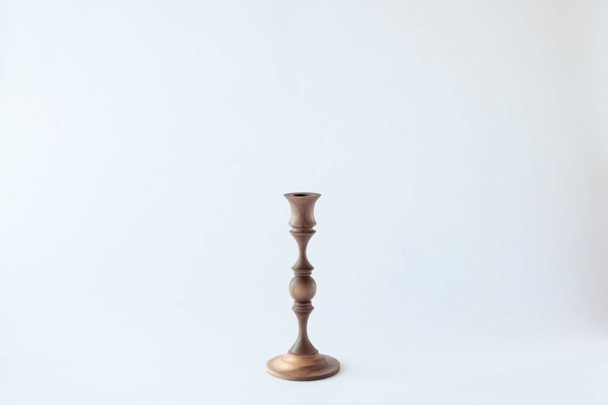 ウォールナットの無垢材を丁寧に削り出し、柔らかな曲線を生かして仕上げたキャンドルホルダーです。