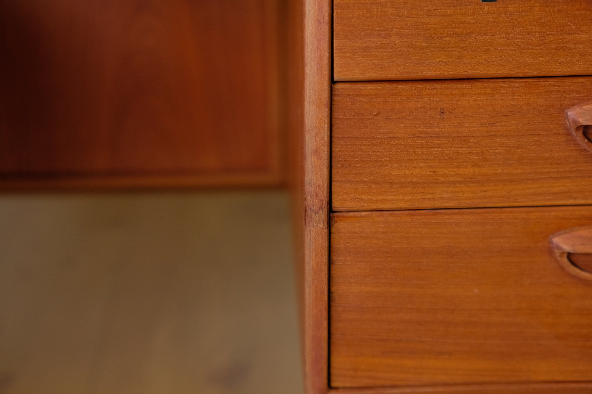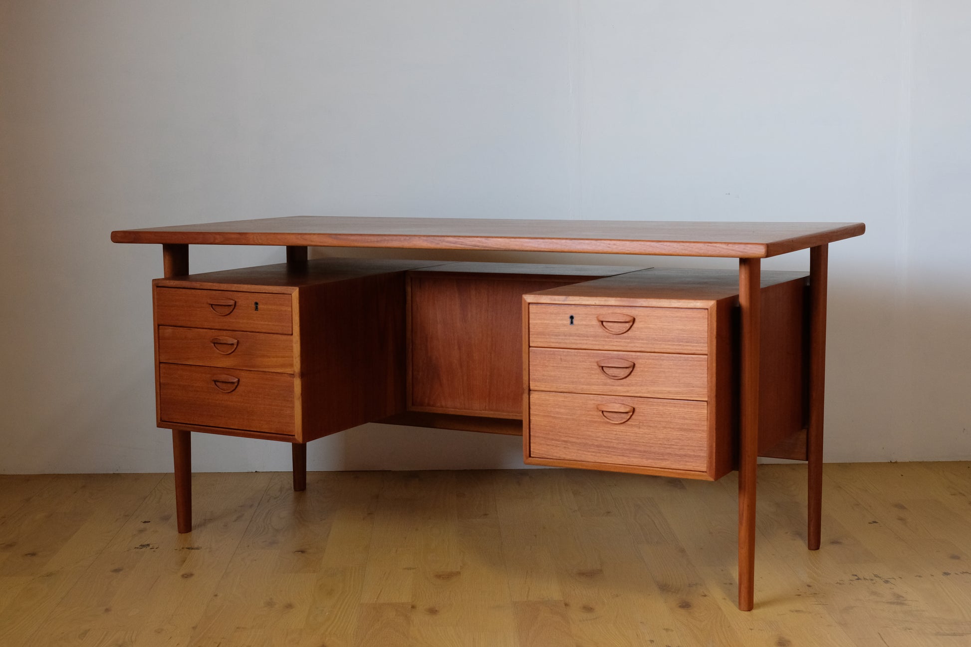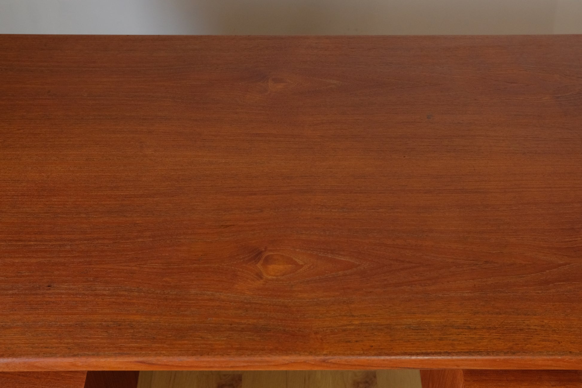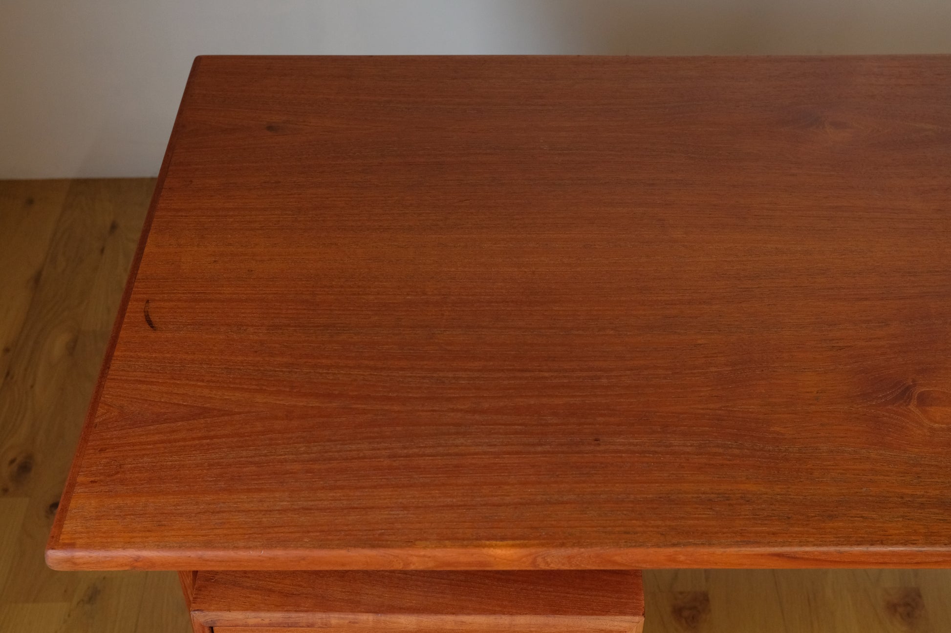ワークスペースを、洗練された北欧モダンの空間へ。デンマーク人デザイナー、Kai Kristiansenが1960年代に手がけたこのヴィンテージデスクは、チーク材を贅沢に使用し、浮遊感のある天板デザインと左右に配された収納により、機能と美を見事に両立。使い込むほどに艶を増す木目は時を越えて輝き、書き物やデスクワークを日常から特別なひとときへと昇華します。日本の暮らしにも溶け込む温かみと、空間に凛とした存在感を。60年代北欧の名品が、あなたの暮らしに新たなストーリーを刻みます。