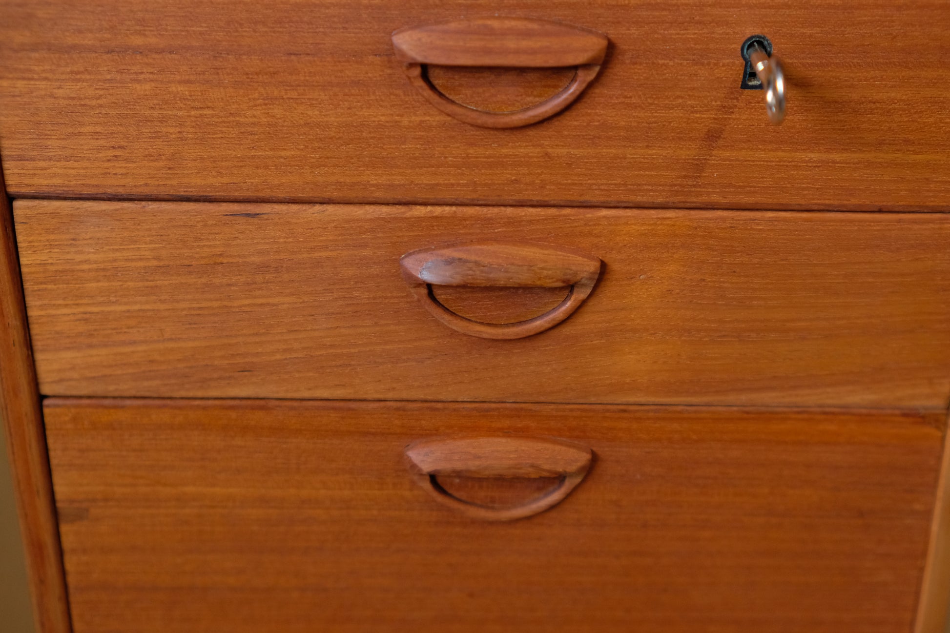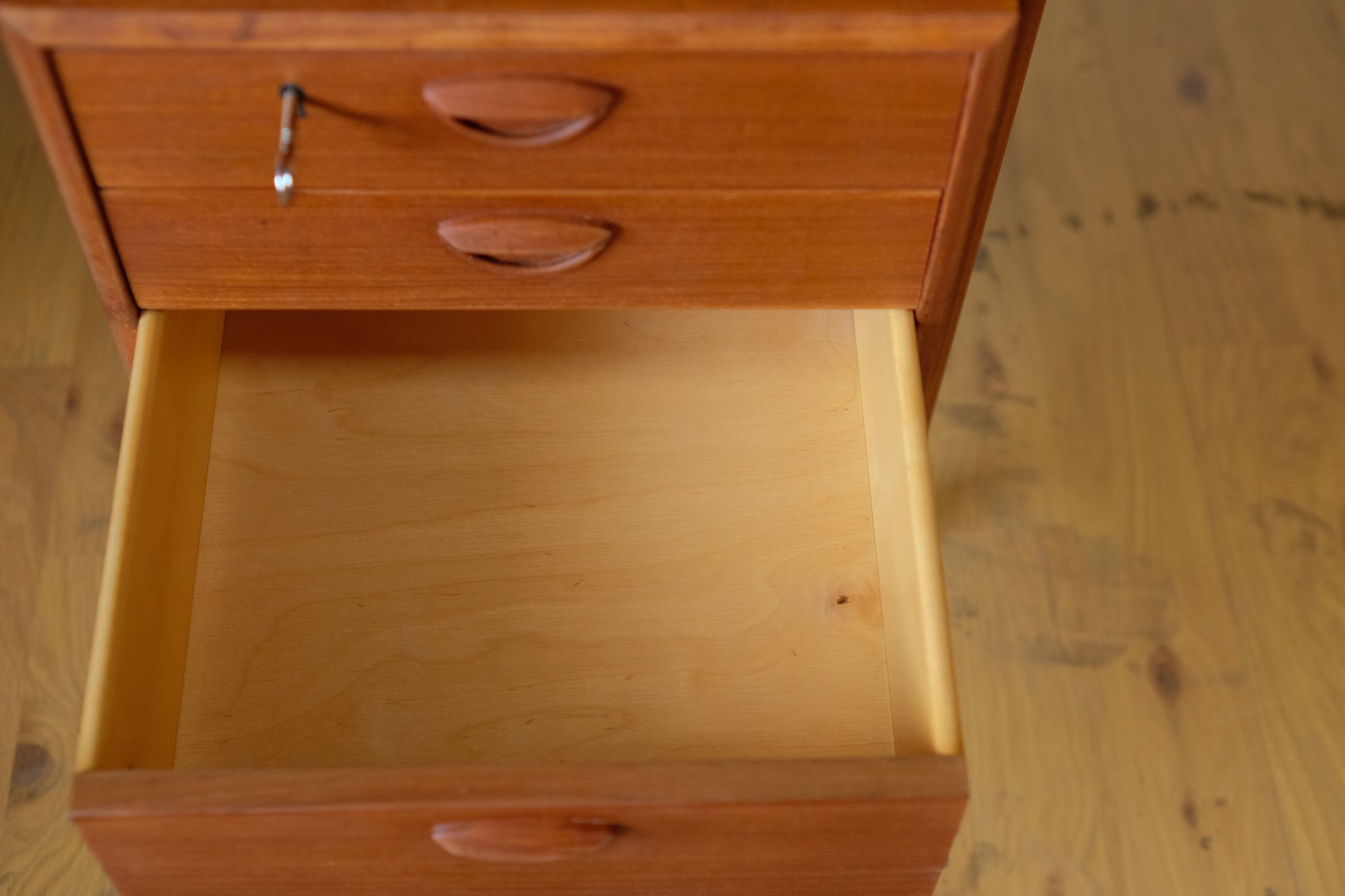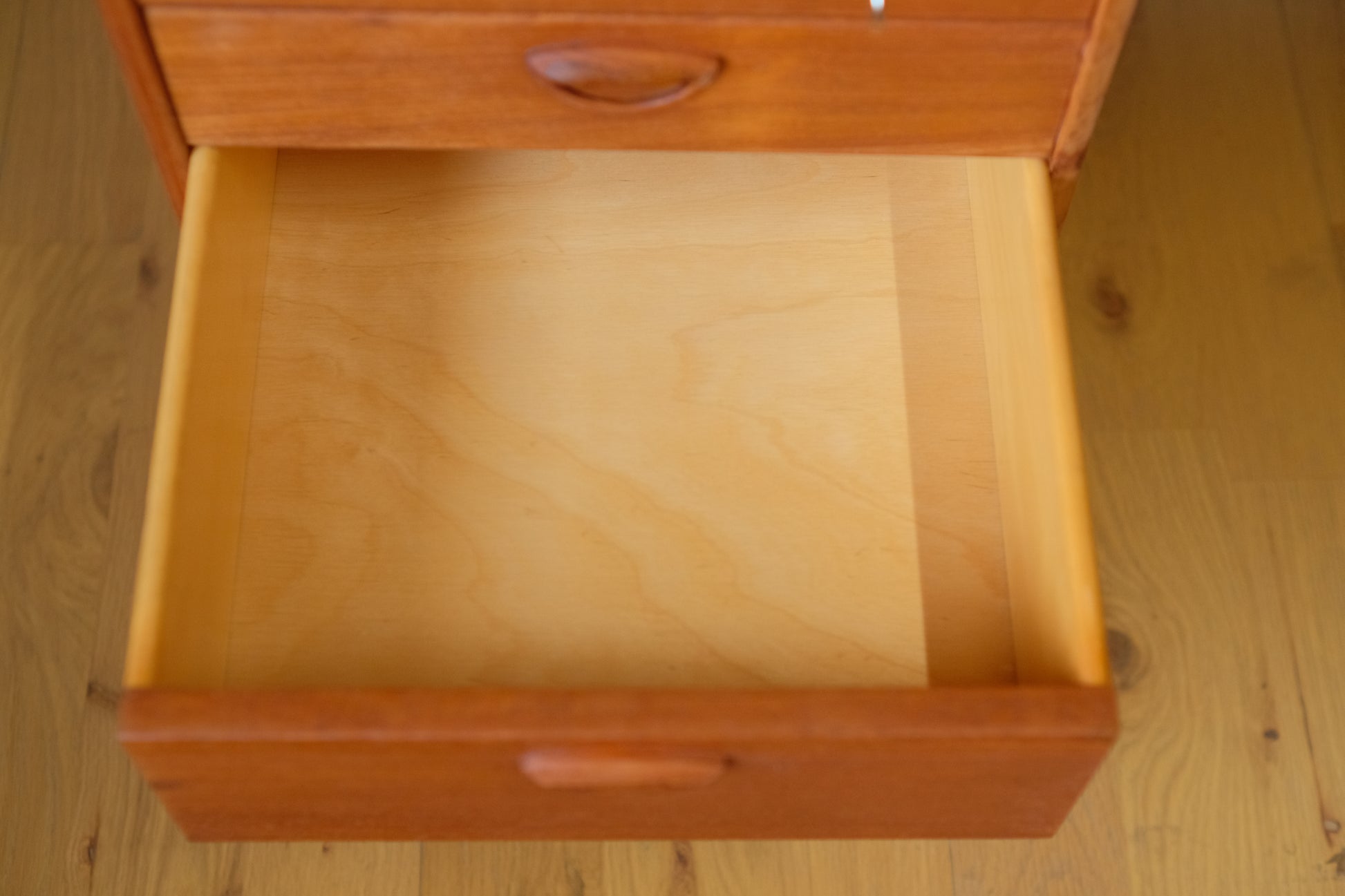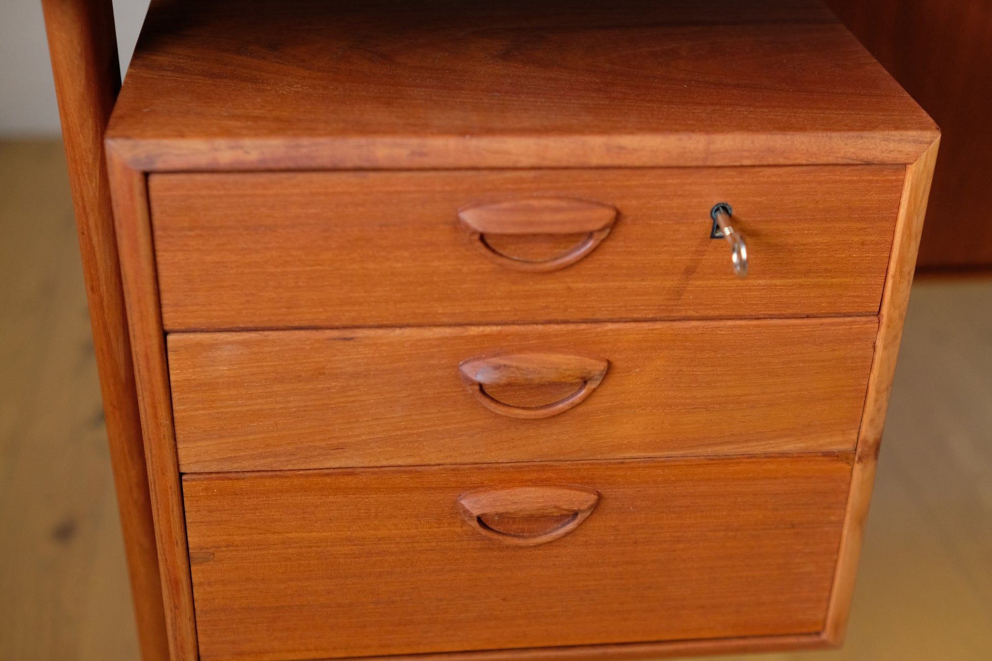 ワークスペースを、洗練された北欧モダンの空間へ。デンマーク人デザイナー、Kai Kristiansenが1960年代に手がけたこのヴィンテージデスクは、チーク材を贅沢に使用し、浮遊感のある天板デザインと左右に配された収納により、機能と美を見事に両立。使い込むほどに艶を増す木目は時を越えて輝き、書き物やデスクワークを日常から特別なひとときへと昇華します。日本の暮らしにも溶け込む温かみと、空間に凛とした存在感を。60年代北欧の名品が、あなたの暮らしに新たなストーリーを刻みます。