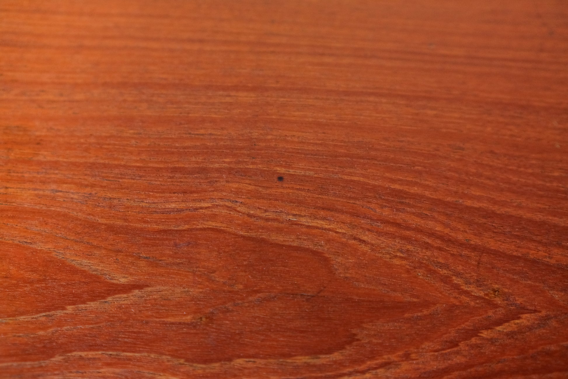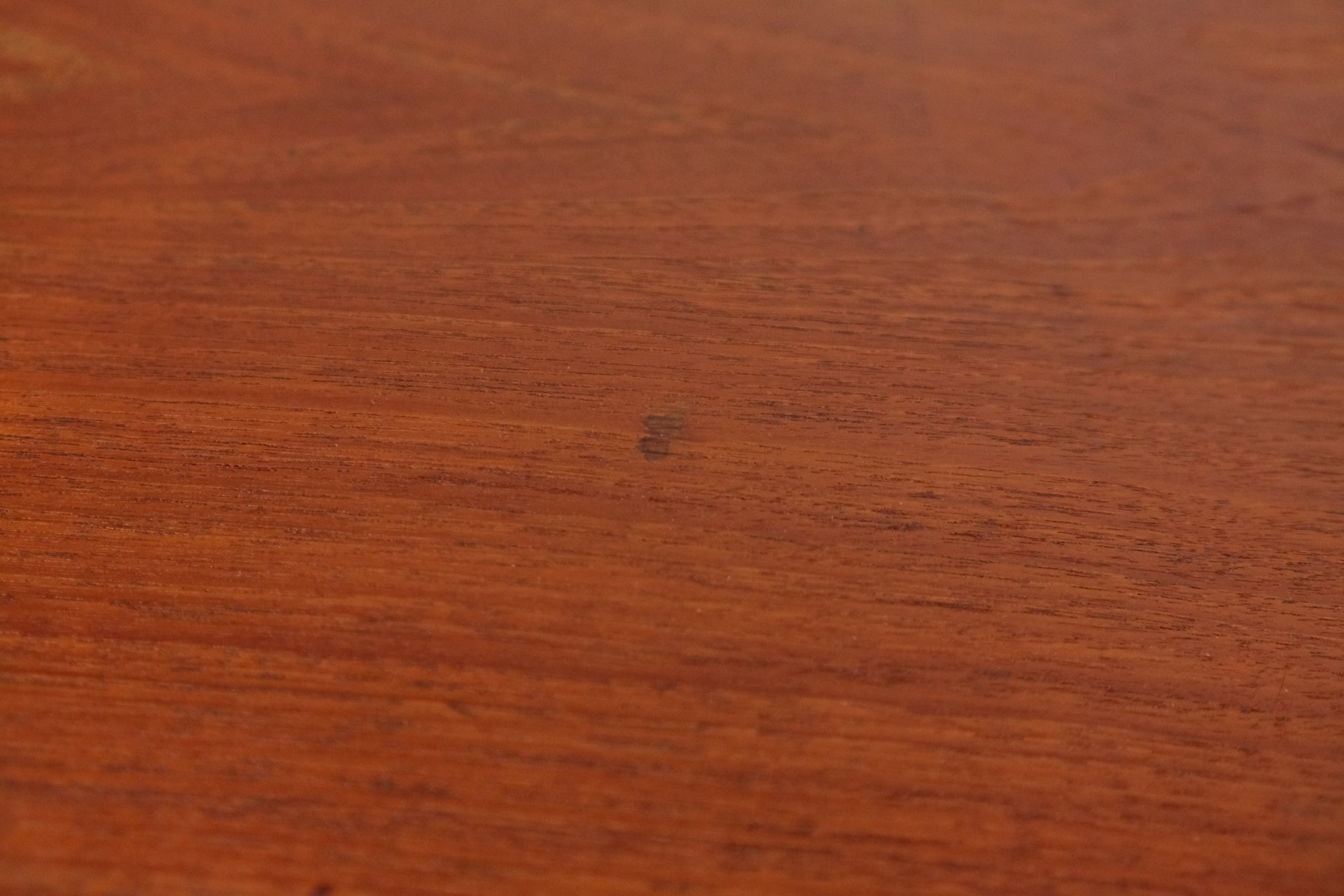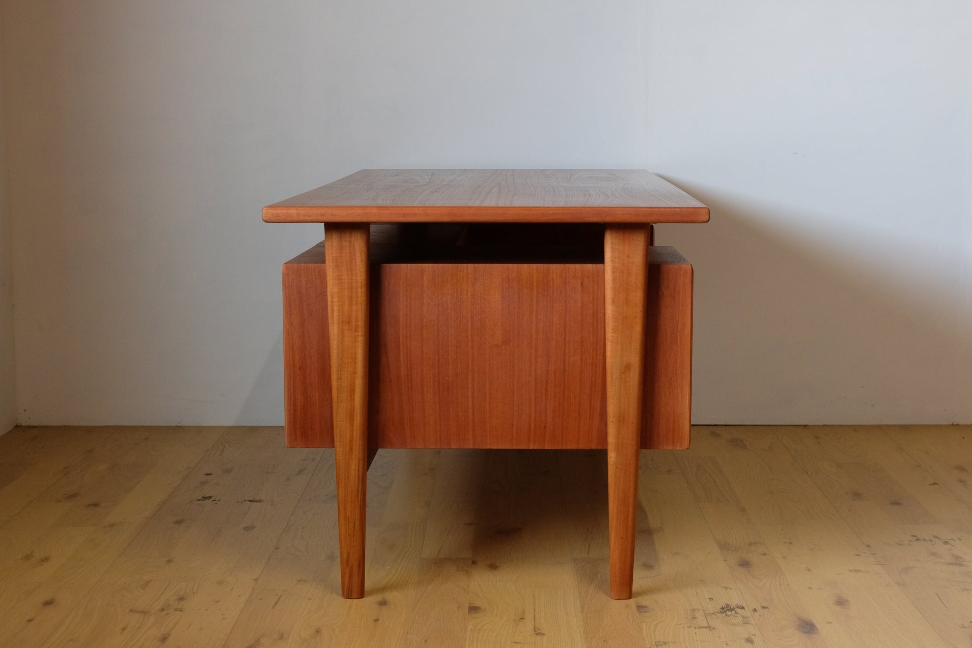 このデスクは、彼の哲学そのままに、清潔感あふれる直線と繊細な仕上げを融合させています。ローズウッドやチークを用いた中でも、天板の繊細な浮遊構造や、収納構成の美しさは特筆に値し、当時から現在に至るまでコレクターから高い評価を受け続けています。