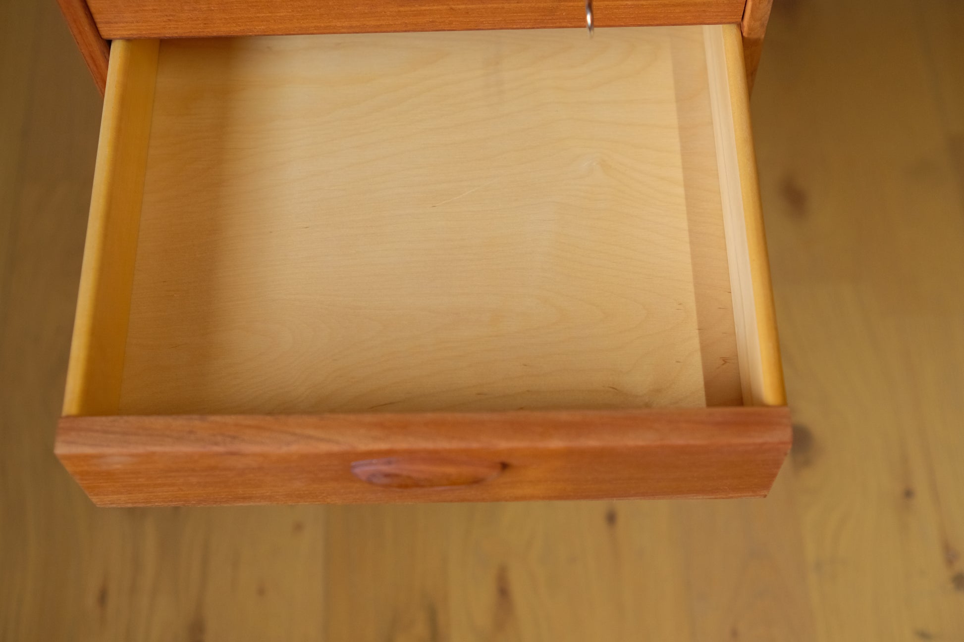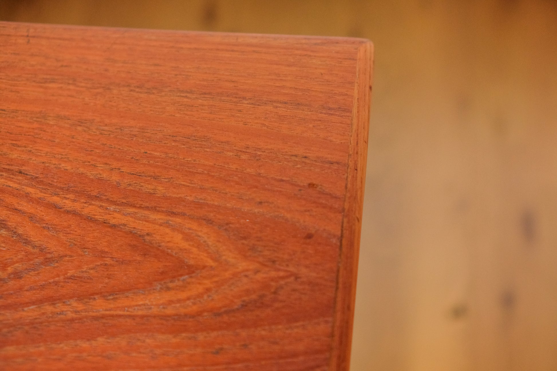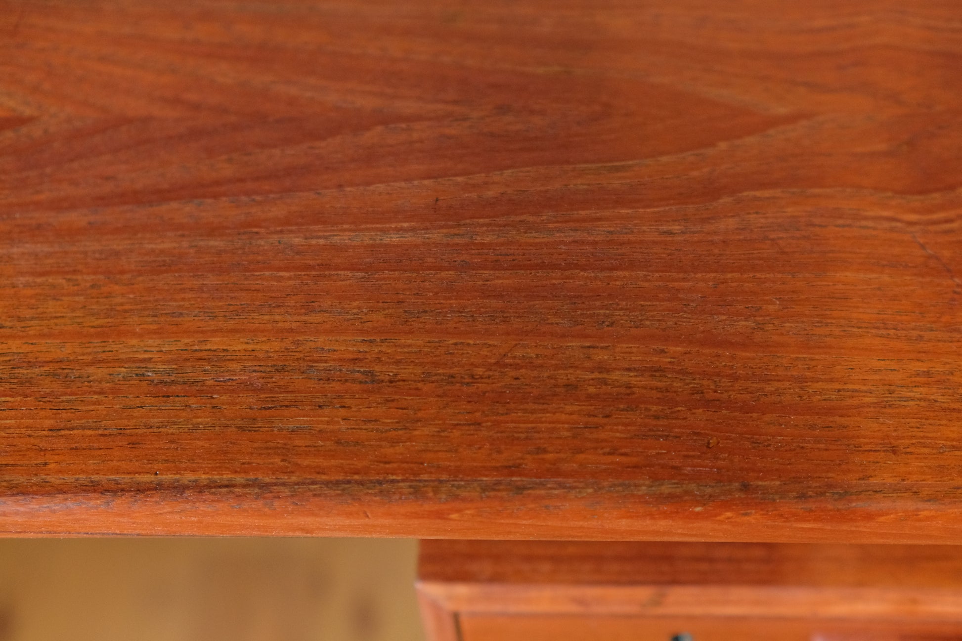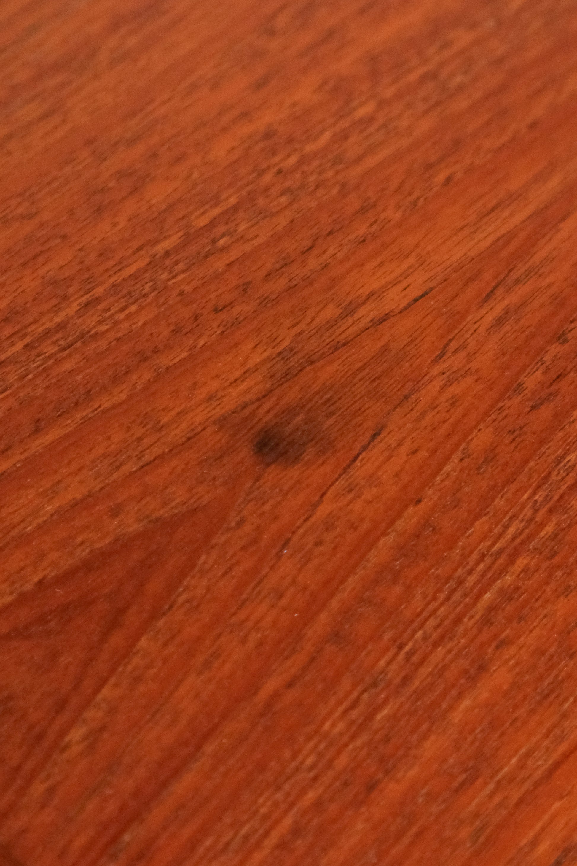 このデスクは、彼の哲学そのままに、清潔感あふれる直線と繊細な仕上げを融合させています。ローズウッドやチークを用いた中でも、天板の繊細な浮遊構造や、収納構成の美しさは特筆に値し、当時から現在に至るまでコレクターから高い評価を受け続けています。